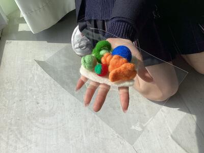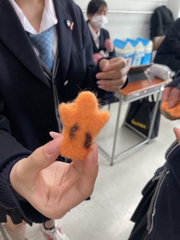 2年農業科では、羊毛フェルト作品の返却と1年を振り返るムービーの上映がありました。