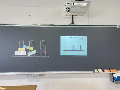 1年電気科の数学は、ハノイの塔をみんなで考えていました。
