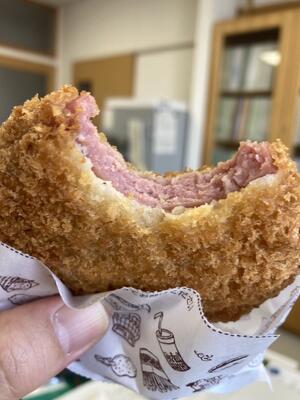 今日は、ハムカツを買いました。ニヒヒ初めて食べるかも