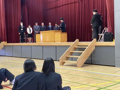 本年度、機械科の菊地くんと農業科の千葉くんが自衛隊へ入隊しますので、